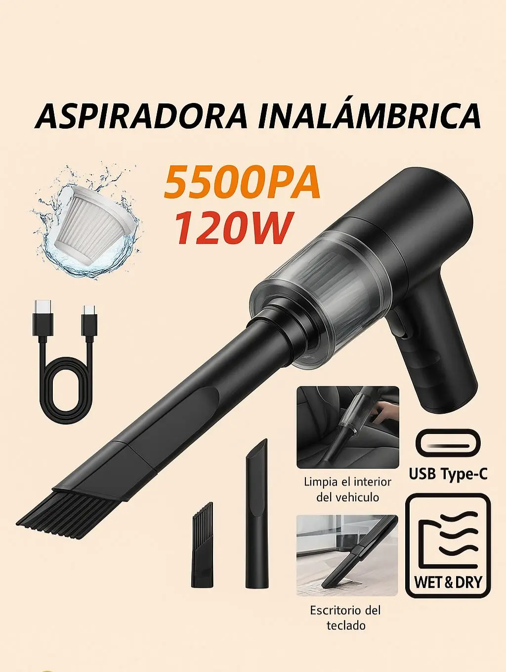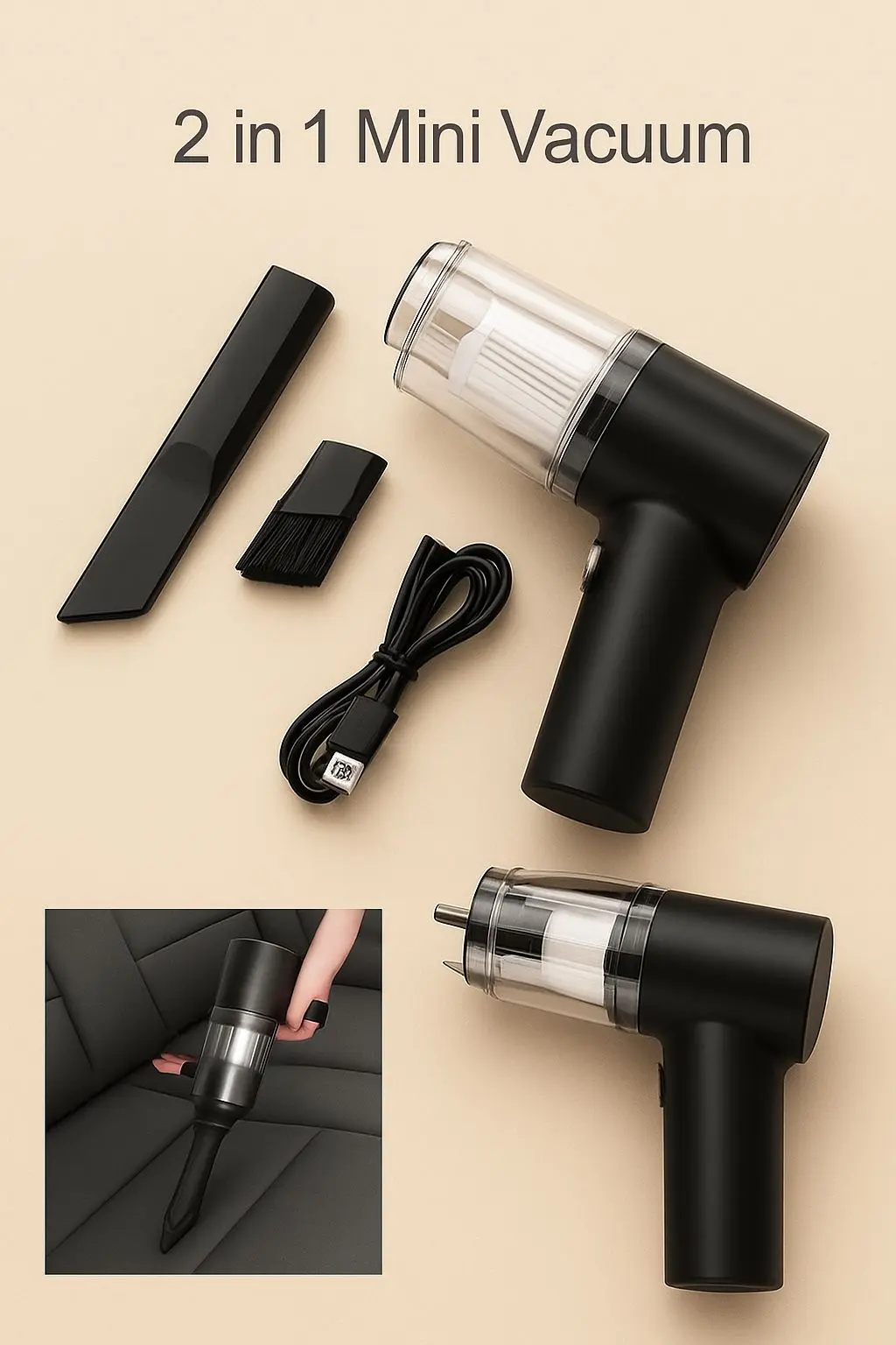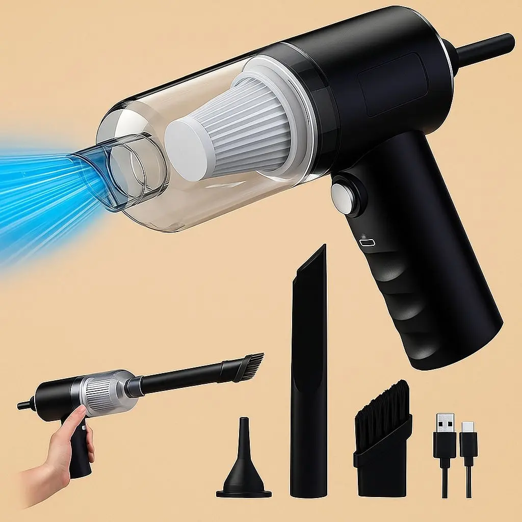 Nuestra Aspiradora Portátil 2 en 1 es la solución rápida y práctica para mantener todo impecable en cuestión de minutos.