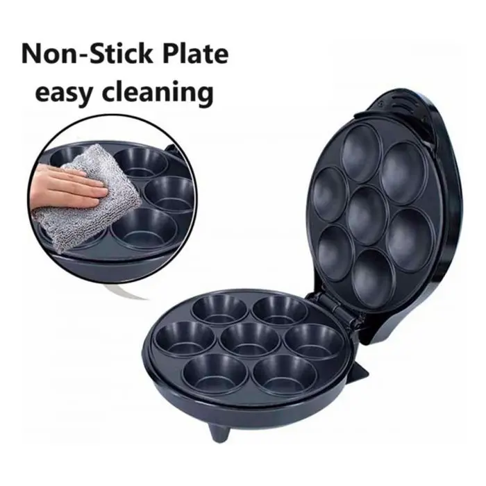 • Cocción Rápida y Uniforme: Bobina calefactora de 1200W con calentamiento superior e inferior; cupcakes listos en solo 3-5 minutos.